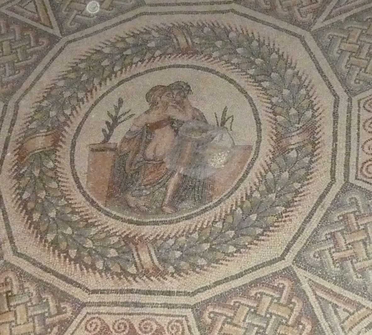 寝室に使われていたという部屋の床のモザイクです。