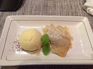 デザート:リンゴのストゥルーデルとマスカルポーネのジェラート