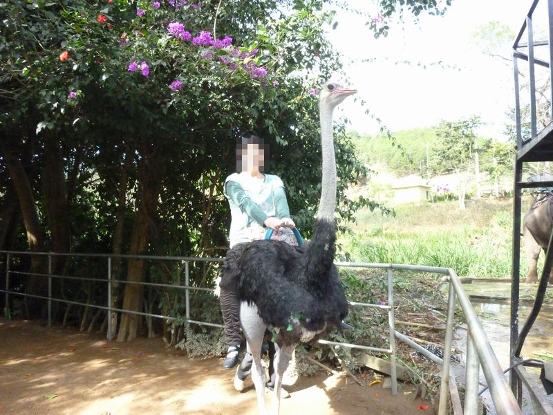 ダチョウの背中に乗りました。