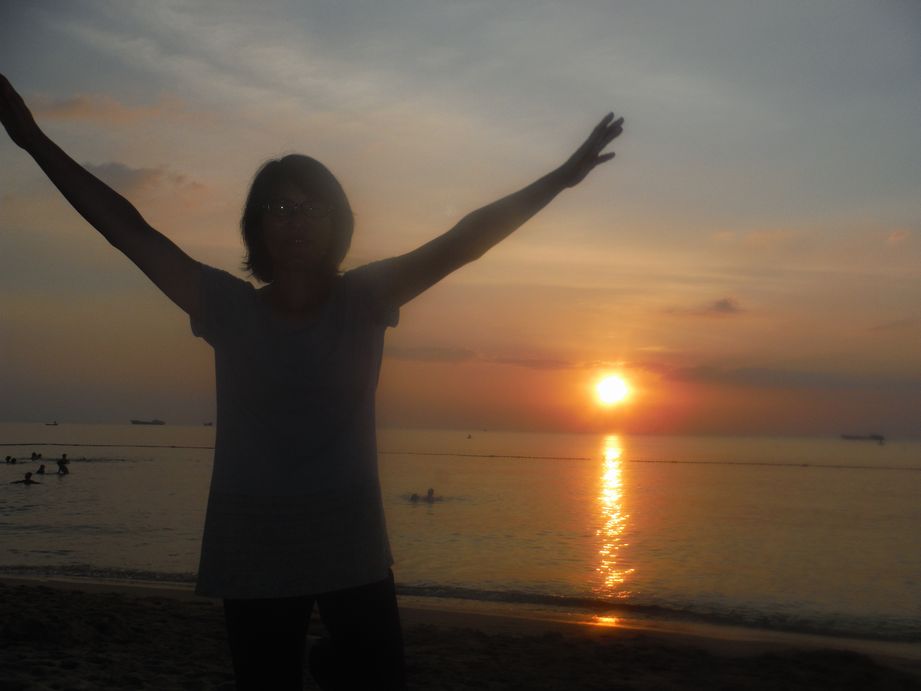 それでも何とか復活して 美しいサンセットをビーチで眺め