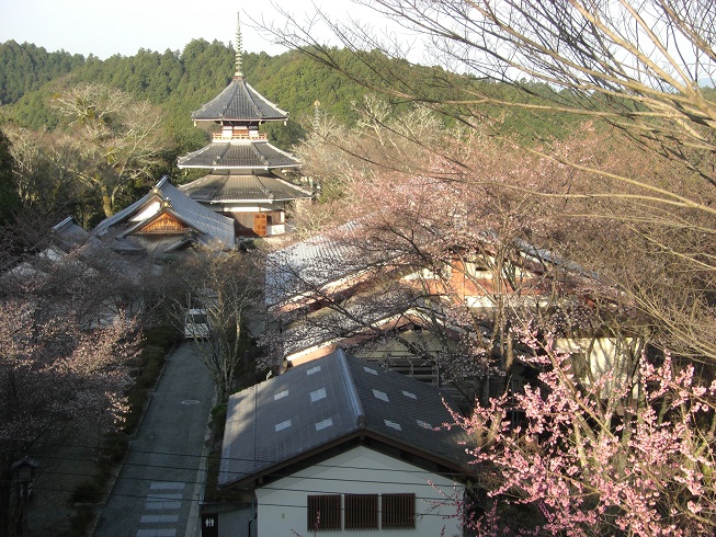 満開の中千本 観光車道から、蔵王堂を撮りました