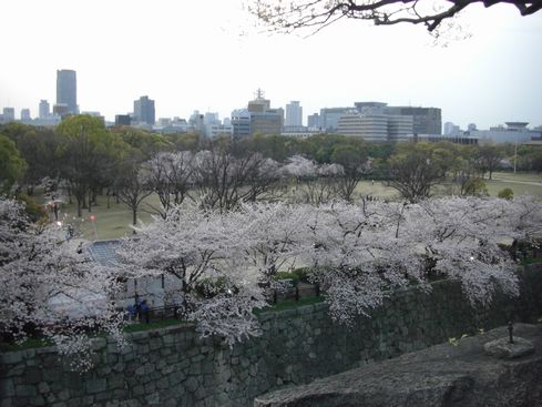 大阪城も桜の向こうに見えました。