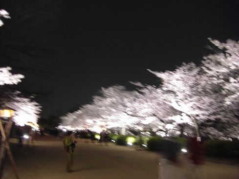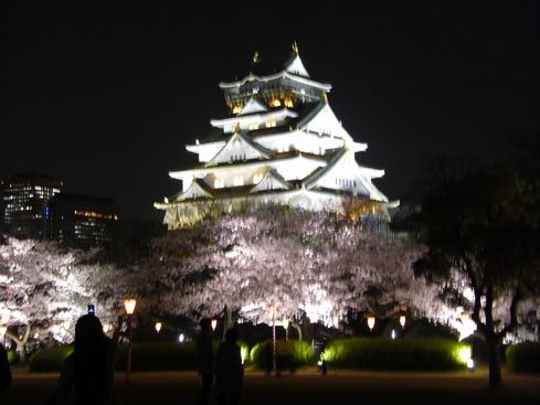 日も暮れて 大阪城二の丸庭園の夜桜見物。