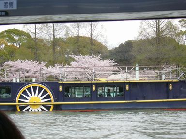 中之島をクルーズしながら桜見物。造幣局を後ろから見ます。