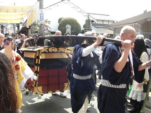 露払(青い法被を着た人)は、「下に~。下に~。」と言いながら、