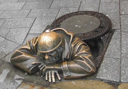 くさり橋にライオンのモニュメントがあるのですが、舌がありません。
