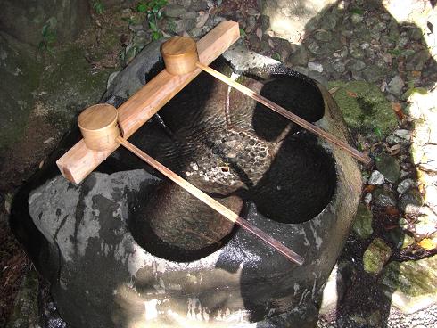 敷地内にある大山祗神社の梅の形の手水鉢
