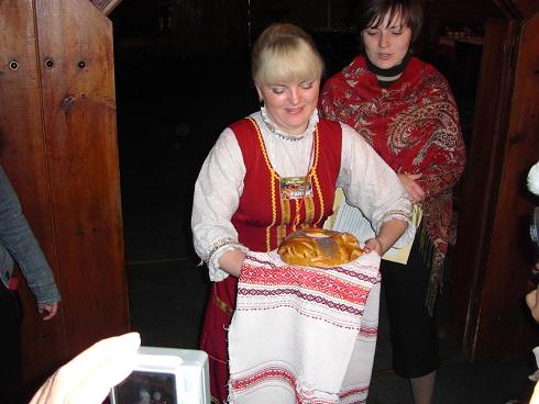 焼きたての大きなパンの真ん中に お塩が盛ってあり、