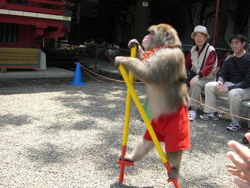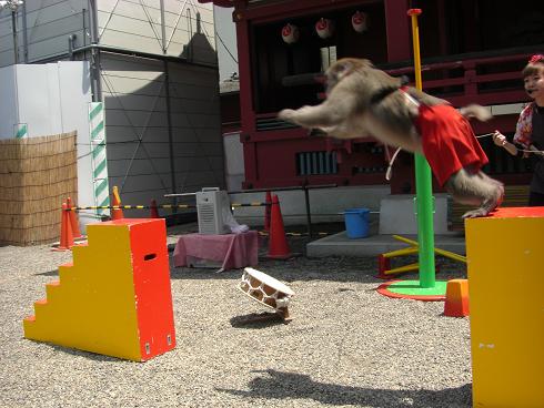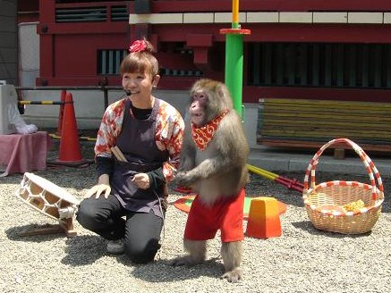 頑張ってましたよ。りく君。猿回しのお姉さんとの息もピッタリ。
