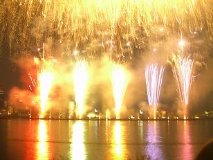 フィナーレの花火は、写真では光しか映っていません。