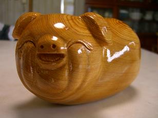この豚の彫り物、見ているとこちらまで笑顔になります。