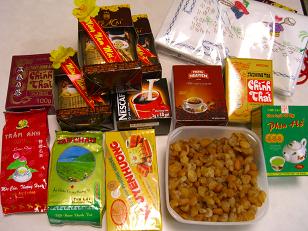 カフェマイのコーヒー豆とか、蓮茶、BANH DAU などなど。
