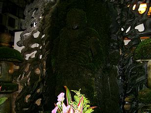 いつも水を掛けられているので、お不動さんは苔むしています。