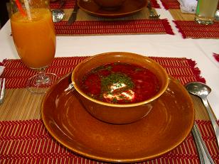 黒パンはやはり酸っぱいお味でした。 ボルシチは、代表料理ですね。