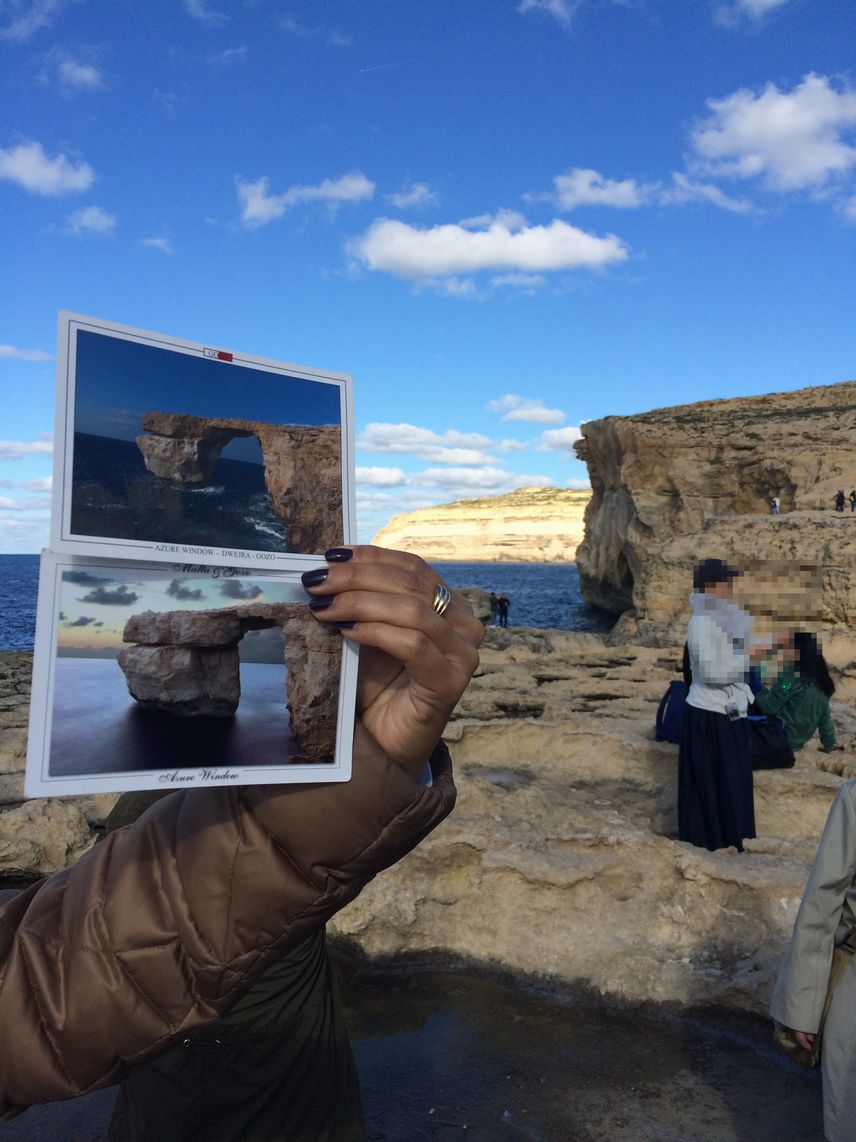 現地ガイドさんが 手に持っているのは、崩落前の絵葉書。