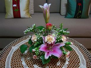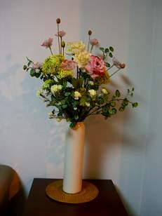 左は、Iさんが私のために生けて、Kさんのお宅に届けて下さったお花。