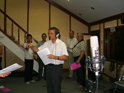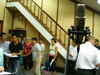 夜6時にM先生と待ち合わせをして、日本食レストランでご馳走になった後、他の日本人のかた2人と一緒に、録音会場へ。