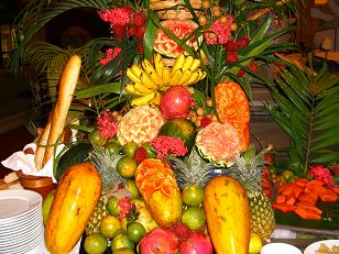 麺が美味しそう。 果物の飾り切りが綺麗