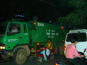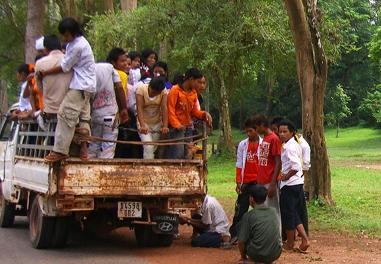 公共のバスも電車も走っていません。移動の時は、バイク、またはトラックの荷台に乗っていくそうです。トラック1台30ドルで、30人ぐらい乗るので一人1ドルだそうです。どうも、パンクしたようですね。