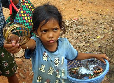 車のまわりによってくる小さい売り子さん。 パイナップル売りの女の人