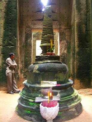東西の入り口から3つの塔門をくぐり抜けると中央祠堂があり、そこにはストゥーパ(墓)が置かれていて、周辺は迷路のように回廊がめぐらされてます。