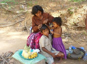 右:シラミを取っているところ