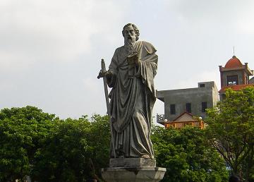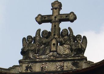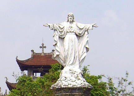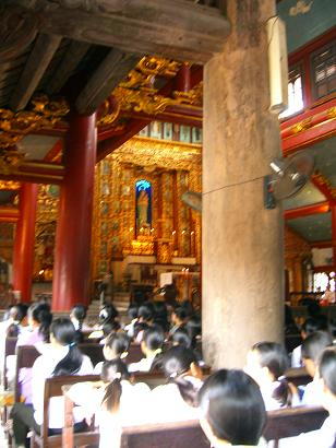 西洋の教会のイメージからは違和感がありますが、キリストがベトナム文化に溶け込んでいる象徴という意味で素晴らしい融合だと思います。