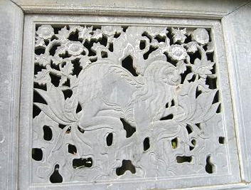 中央池の東西南北には小池を配し、それぞれに人の頭部、馬の頭部、獅子の頭部、像の頭部をかたどった樋口から中央池の水が流れこむように設計されています。