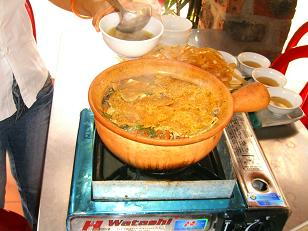 カースナオという黄色の花と、トレサップ湖でとれる蓮の茎のすっぱいスープ。(タマリンド味)