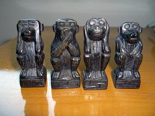 日本の三猿”見ざる、言わざる、聞かざる”と違い、こちらは四猿なのです。