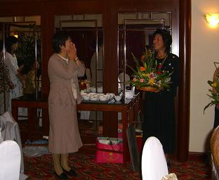 左:知り合いのベトナム人から届いた花束。