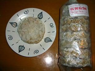 左:Cu Do。ゴマを飴で固めたような物を、塩味の薄い白い