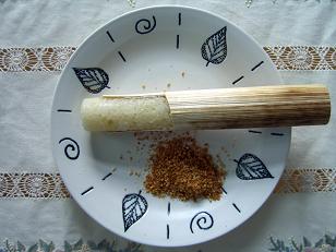 それを剥いて、ごま塩につけて食べます。
