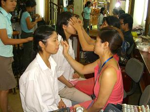 5層ほど顔に塗り、自分の娘とは思えない顔に変身。