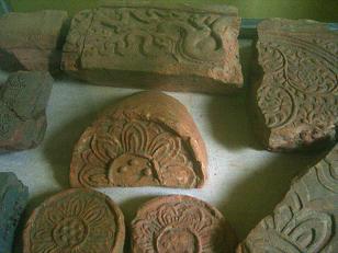 中には、李朝(レンガに刻まれて蓮の花ひらと屈曲した龍)、陳朝(菊の文様)時代の発掘されたものが少し展示されていました。