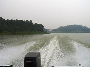その後モーターボートで湖を渡ります。