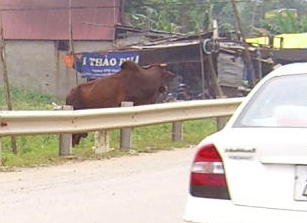 その間、一部、有料道路を通りますが、有料と言うだけで高速道路でも自動車専用道路でもなく、牛や水牛も道路に出ていたりします。