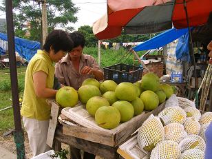 帰り道、道路わきに売っているブオイ(ザボン)を6000VND(50円)で買いました。