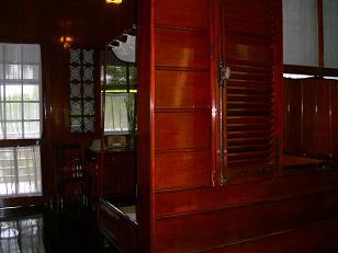 間口が狭く、奥行きが深いく、中庭があるのが特徴です。居間、寝室、台所、トイレなど当時のまま残されています。