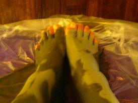 メニュー(綺麗になれそう) 泥を塗った私の足です。