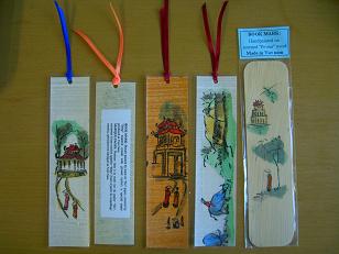 Pơ muという香りの良い木や、ゾーの木の紙で作ったしおりや、