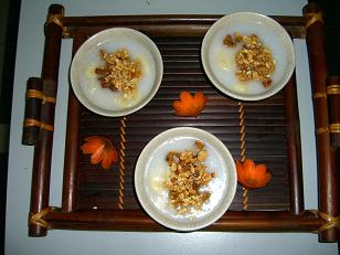 味付けに、ピーナツ、乾燥バナナをトッピングします。