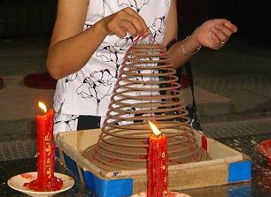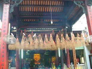 天井から、巨大な渦巻き状の線香が沢山かけられていました。