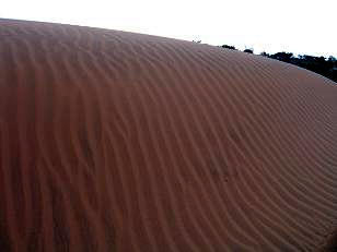 燃えるような赤みを帯びた砂丘が続きます。