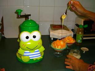 ケロッピーのカキ氷機で カキ氷を作ってくださったのを頂戴した。